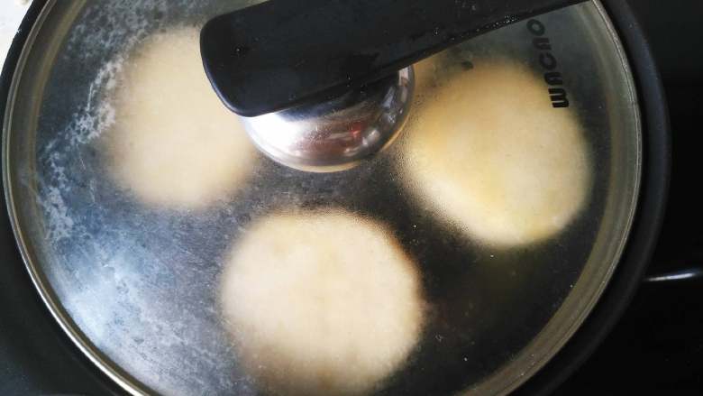 22. 不粘锅里放适量油,将饼坯放入锅里,小火煎