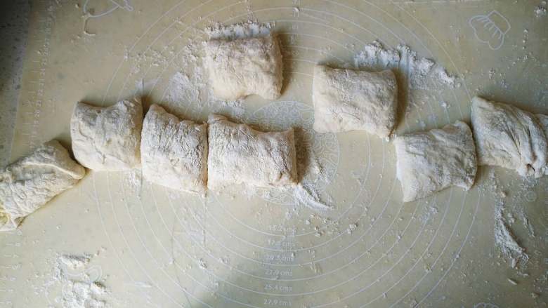 9. 在台面上放多一些面粉,将面糊放在面粉中