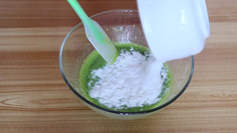 15. 取1/3蛋白霜到菠菜蛋黄糊中