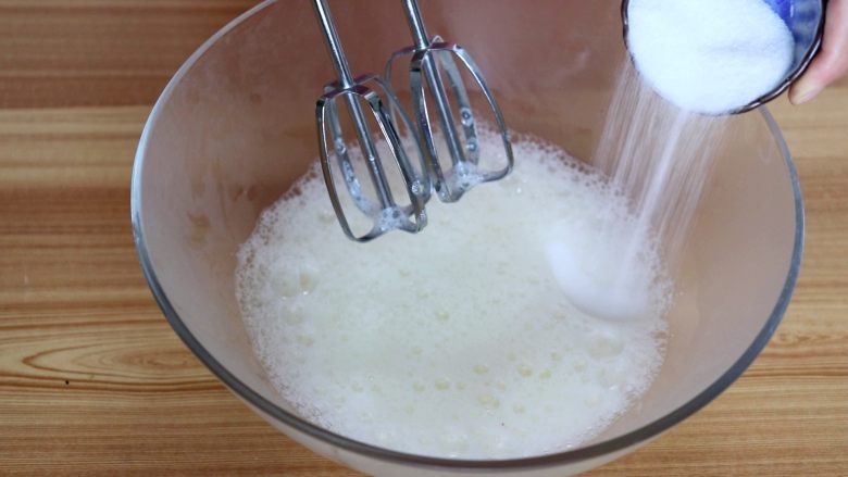 12. 倒入剩下1/3的白砂糖 tips:第三次加糖