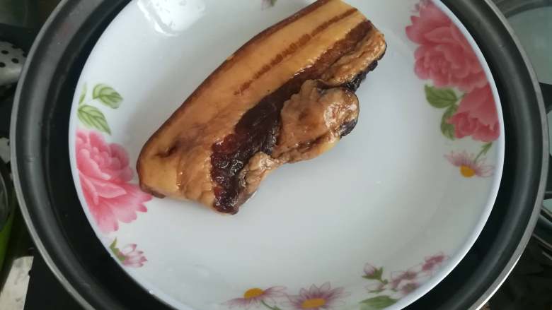 2. 烧一锅热水,腊肉大火蒸10-15分钟