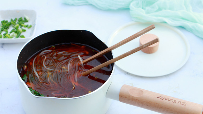 3. 锅中加水,水开后下粉丝煮熟,捞出备用。