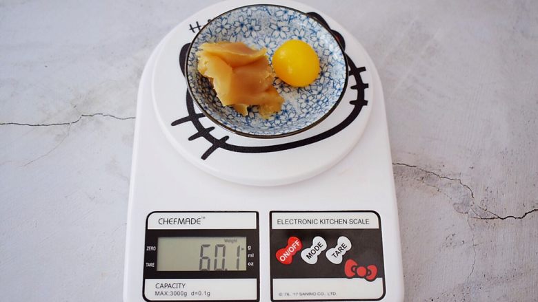 7. 再来制作流心馅把馅料做出杯的形状,然后把奶黄流心馅挤入,大概为10克左右,加上馅料共为60克,再收口捏紧,搓圆放入冰箱冷藏或冷冻备用