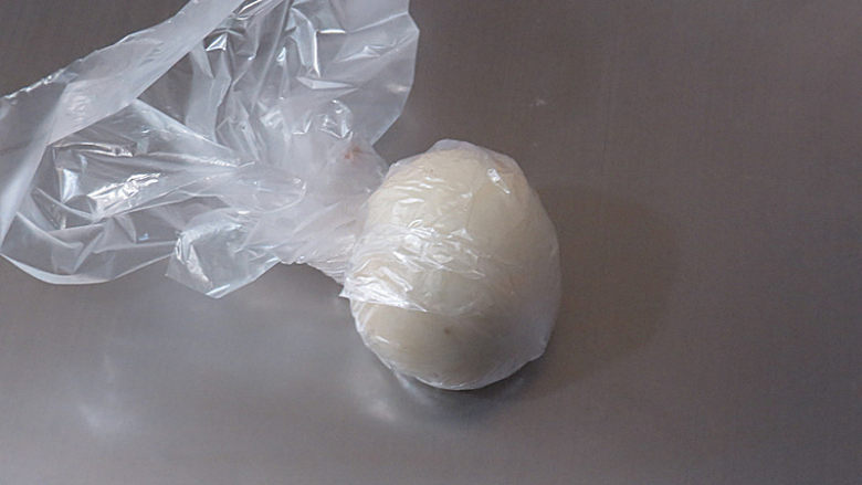 13. 把保鲜袋提进来拧几下,一个内馅就包好了,包好后盖上保鲜膜防止风干
