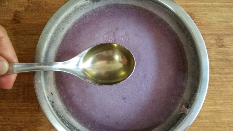 4. 出锅后晾凉去皮,捣成紫薯泥。