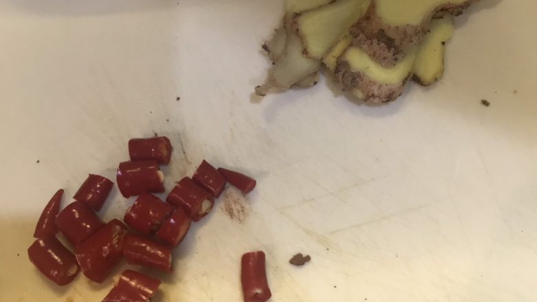 1. 姜切片,红辣椒切丁