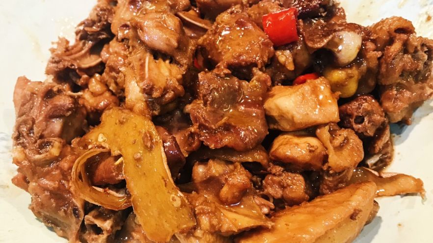 7. 倒入开水盖过鸡肉