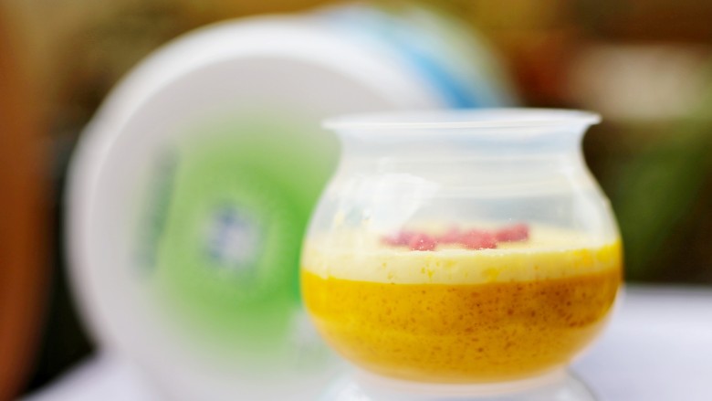 美食丨营养健康 颜值爆棚的分层双色布丁~,上锅蒸十分钟,加几粒枸杞点缀。关火焖五分钟。