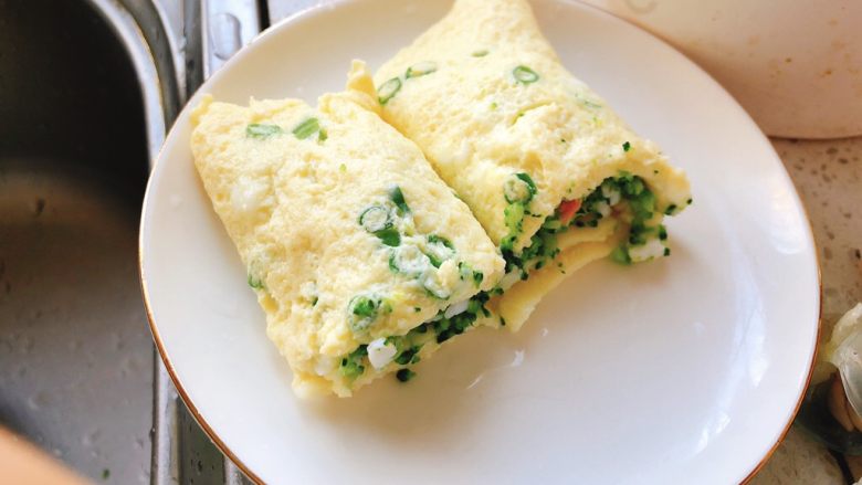 20. 再卷一圈,整个蛋皮包裹着西兰花虾泥。