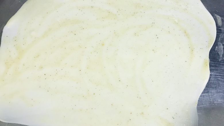 11. 擀成两三厘米厚度左右的圆饼 均匀的抹上油酥