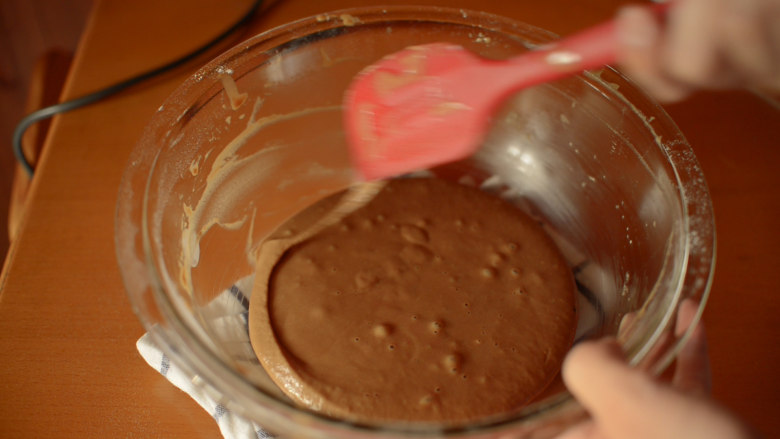 9. 把碗边的材料都混入面糊中。搅拌均匀。