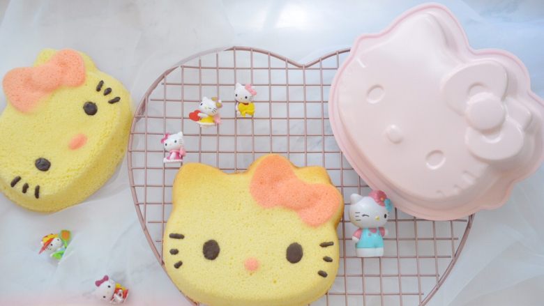 特别喜欢学厨的这款hello kitty系列,萌萌的粉色少女系,特别让人心动,收到模具的第一时间就做了一份戚风蛋糕,受热均匀,上色快,最主要是特别好脱模,虽然是不粘模具,可一点也不影响爬高,买了奶油奶酪,本来试用作业是想交芝士蛋糕的,后来发现做芝士蛋糕的特别多,那我就来一份日式棉花蛋糕吧,松软细腻的口感,弹力十足,搭配上萌萌的外形,就想咬它一口