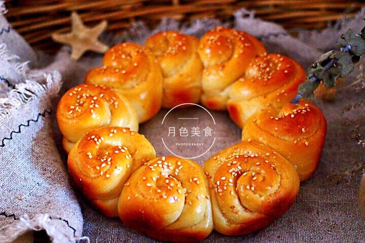 非常柔软又有颜值的花环面包,中间加了椰蓉,香浓可口又不腻、是一款不可错过的面包系列哟……