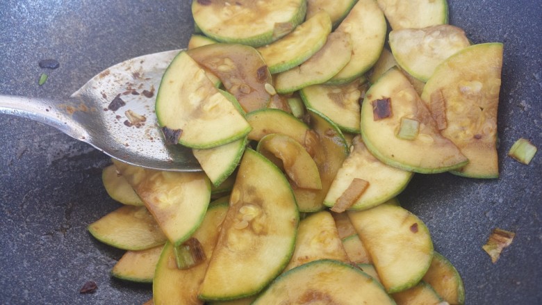 15. 把西葫芦炒出水。