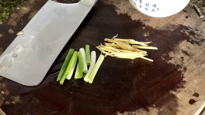 6. 一根小葱洗净切段,一部分姜洗净切丝
