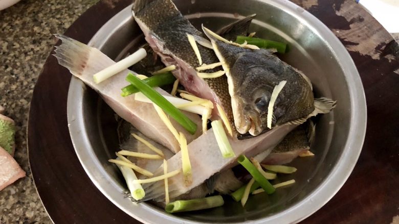 5. 鲽鱼冲洗干净后,切均匀段