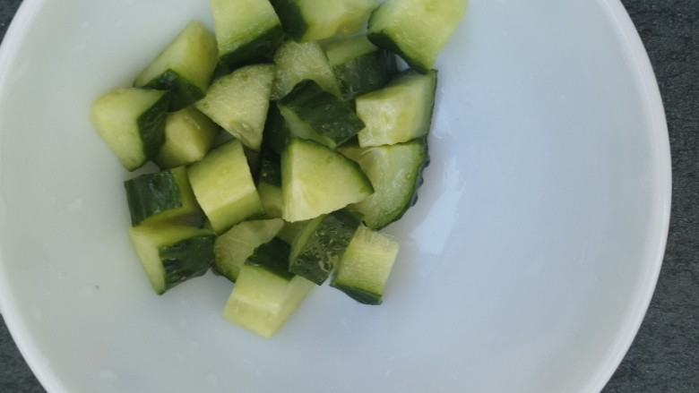 3. 把黄瓜也切成丁。
