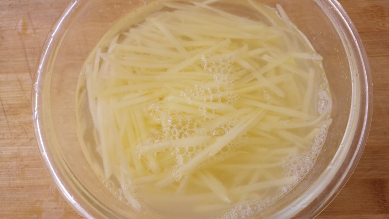 - 土豆丝放水里泡一会,去除淀粉。这样炒的时候不易黏锅。