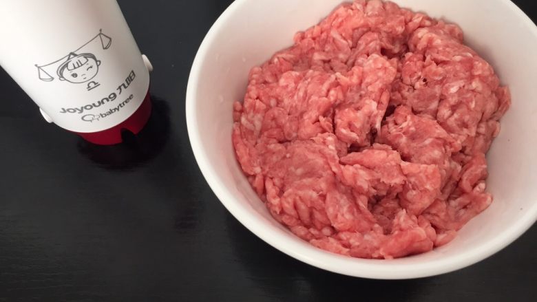 1. 猪肉洗净切块,用料理棒打成肉泥;