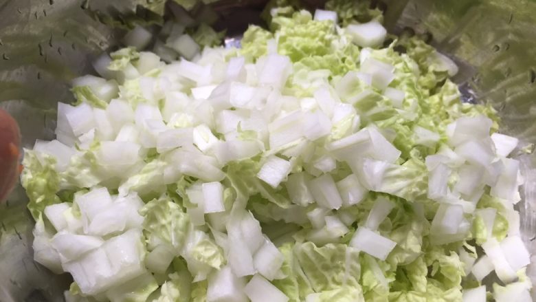 3. 小白菜洗净切碎丁;