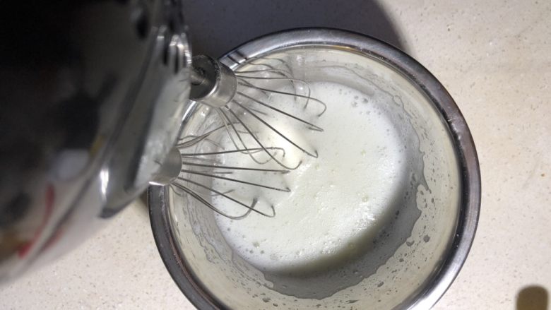 11. 打发到起鱼眼泡,加入1/3的糖继续打发。