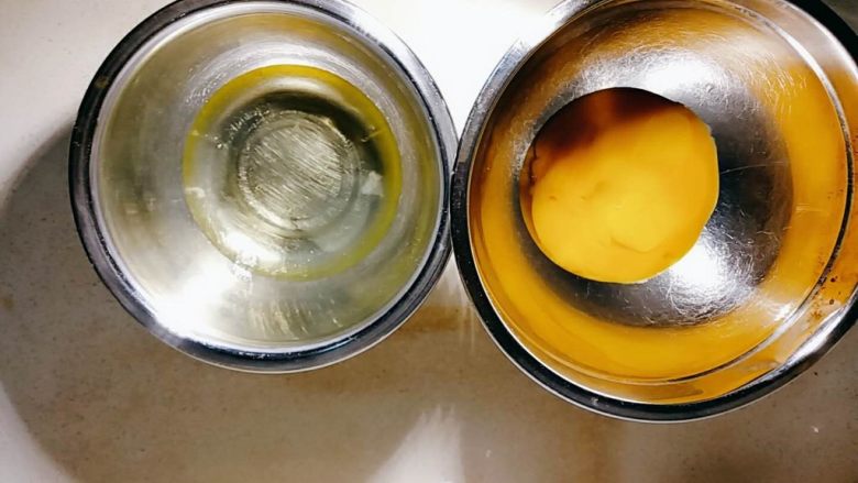 5. 蛋黄敲碎加入糖搅拌至融化。