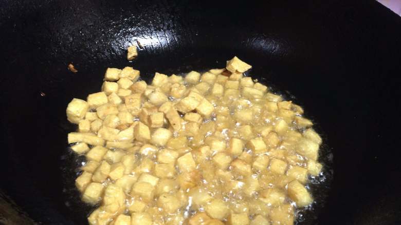 6. 炸至豆腐丁完全酥脆时捞出备用