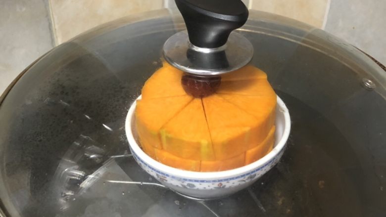 4. 过来放在一个差不多一样大小的碗里,让一颗红枣在上面