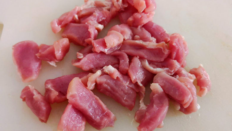 2. 猪肉采用的是猪里脊,都是瘦肉而且非常嫩,切成长条,