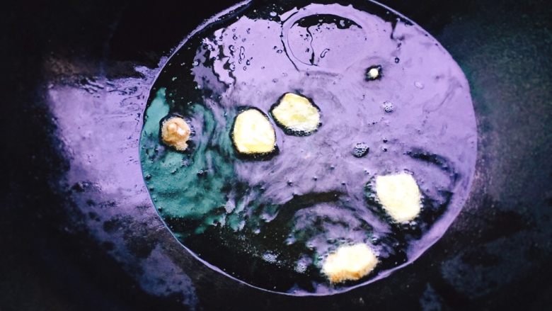 4. 变成两片,然后竖刀切两刀,每一刀都不切断,约入鱿鱼三分之二处,最后第三刀切断