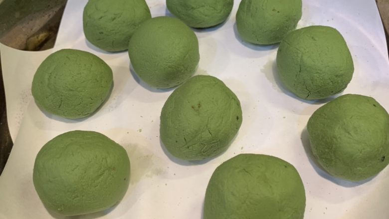 10. 每个面团压平,然后中间放入15g左右的内馅