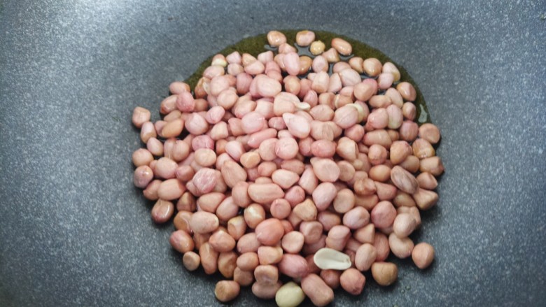 5. 把花生米倒进锅内。