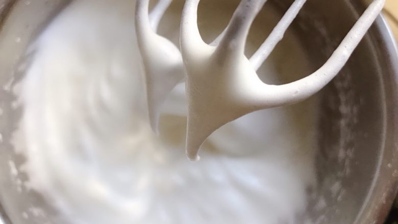 6. 分3次加入30g糖,打至略带弯钩状
