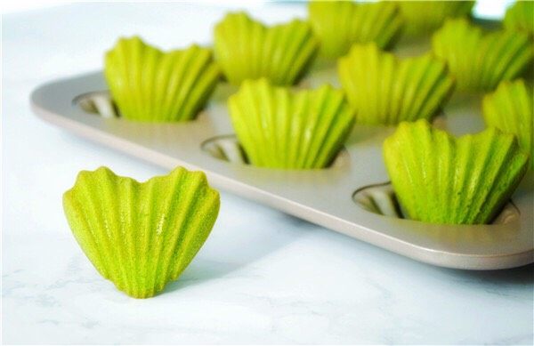 超级喜欢学厨这款心形玛德琳模具,清晰的轮廓,棱角分明,让人爱不释手,用新鲜菠菜汁调色做出的绿色玛德琳,清新的颜色让心情也“绿”动起来。