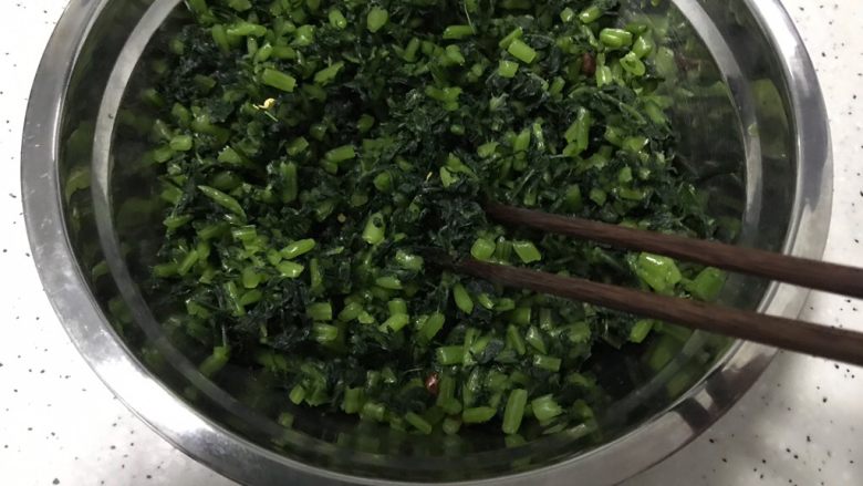 7. 将萝卜缨子切碎 稍微碎一点比较好
