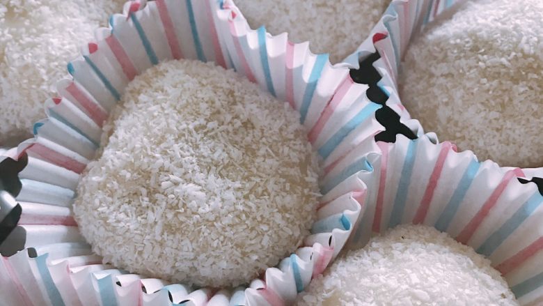 9. 凉透糯米还是粘粘的,随便捏就可以封口包住紫薯,然后粘椰蓉就好了
