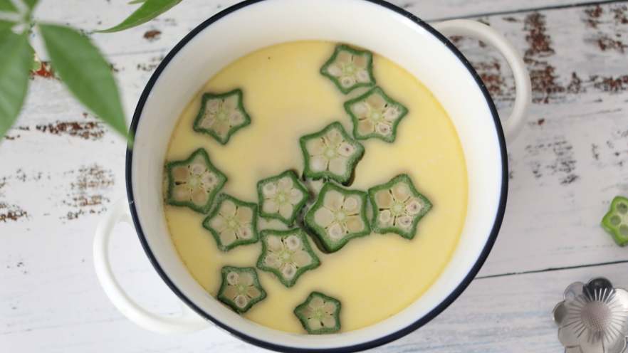 最近家里刚刚供暖,屋里干燥的很,大人孩子都上火。上火就多吃一些蒸菜吧,少油烟、更健康。今天就来推荐一道鲜嫩爽滑的秋葵蒸蛋,对于不喜欢吃煮鸡蛋的小朋友来说,这道秋葵蒸蛋,简直太诱人了,好看的小星星,一口一个,味道棒极了。 秋葵俗称羊角豆、洋辣椒,可是它一点都不辣,秋葵的营养价值非常高,在崇尚健康生活的今天,秋葵渐渐走红人们的餐桌。 秋葵可保肝、补钙、防衰老、耐缺氧,秋葵里的黏液也有助消化、降血脂的作用。对于糖尿病患者来说秋葵也是是非常好的食材。