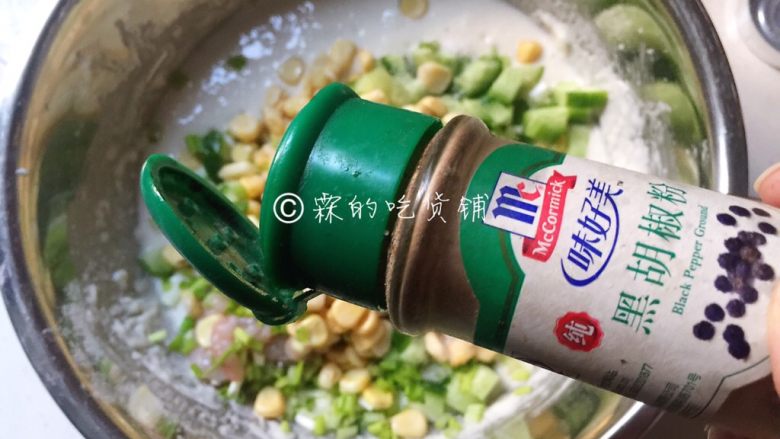 10. 把黄瓜丁等食材一起放入拌好的面糊中,再加入盐