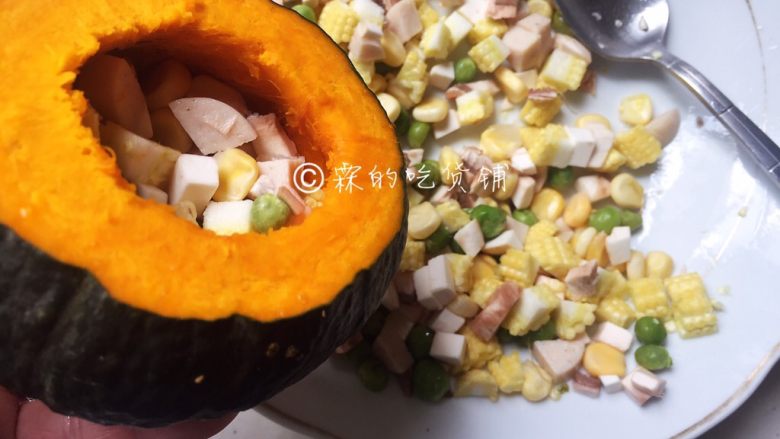 8. 再把混合好的食材放满整个南瓜再把混合好的食材放满整个南瓜