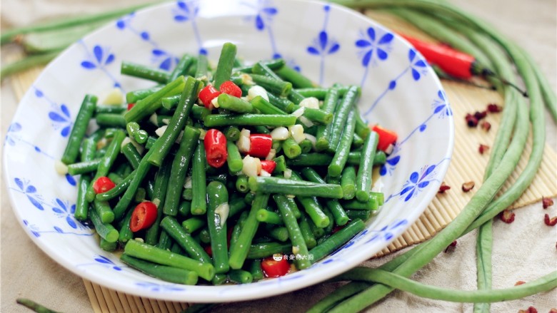 次啦一声,热油浇在豇豆上,香味散出。响油豇豆,非常爽口,非常下饭。