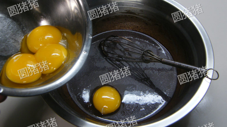 14. 用手打将面糊搅拌均匀,制成可可蛋黄糊。