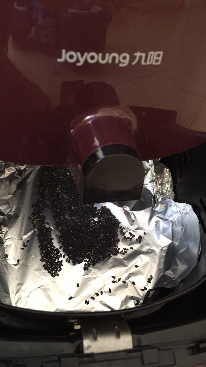 2. 黑芝麻放空气炸锅中,160度烤10分钟左右烤出香味;