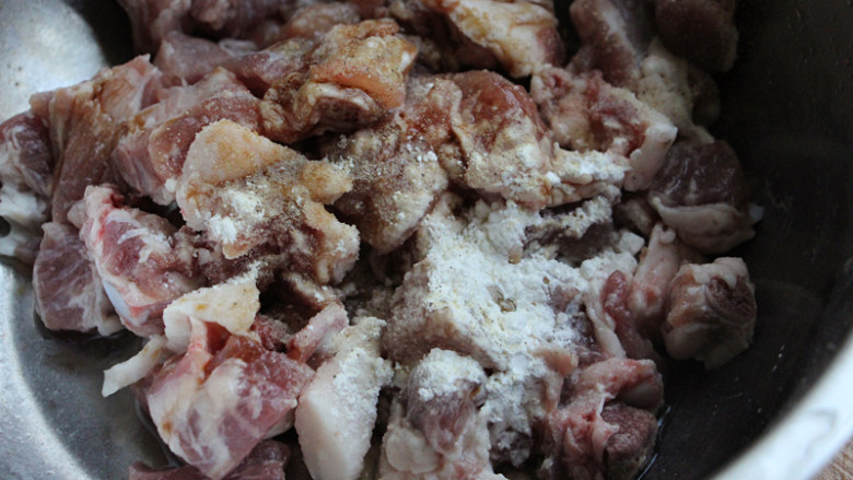 5. 切成小丁,跟排骨一样大小,姜切碎备用。