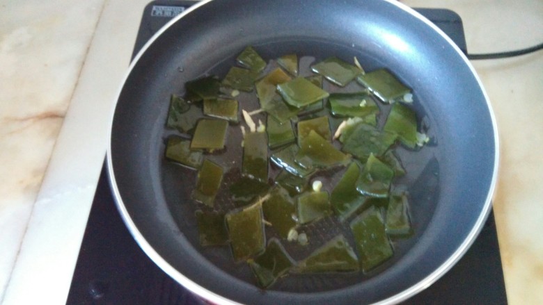 - 海带根用开水焯一下,去醒,豆腐切小块更容易入味。