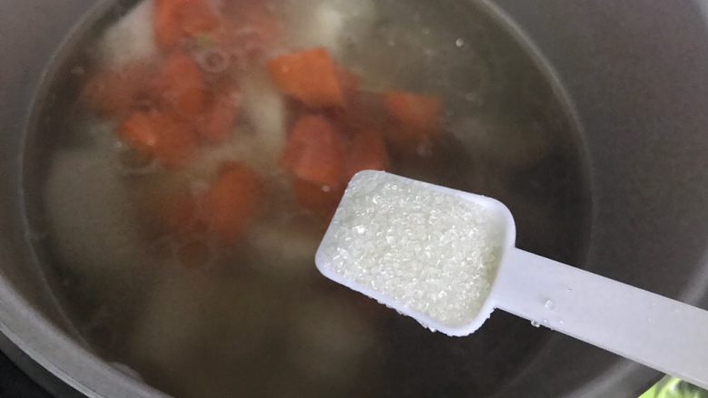 21. 加一丢丢细砂糖,盖上锅盖,继续煮10-15分钟