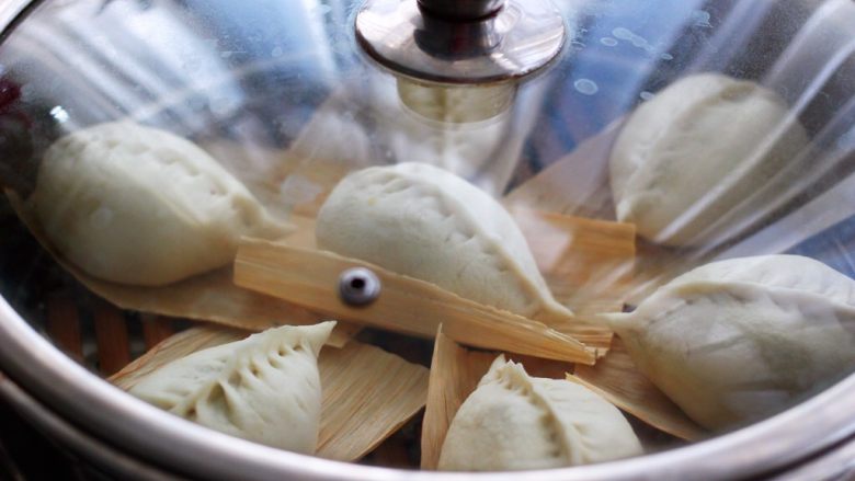 18. 蒸锅里倒入适量的清水后,把包好的包子放入蒸屉上进行二发。