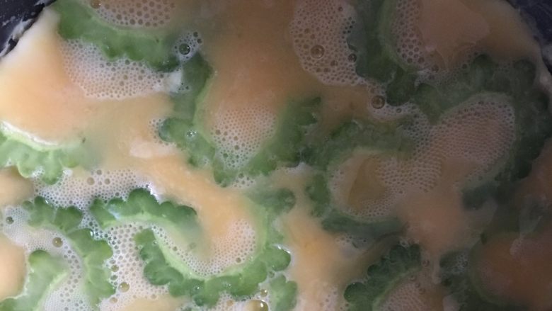 8. 8️⃣ 待鸡蛋液全部凝固,苦瓜煎蛋就完成啦。