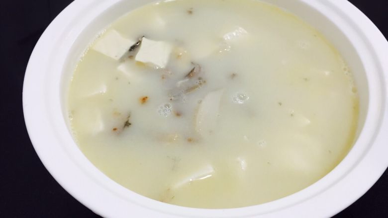 奶白色,鲜香浓郁的豆腐鲫鱼汤,加进杏鲍菇同煮,鲜味更上一层。