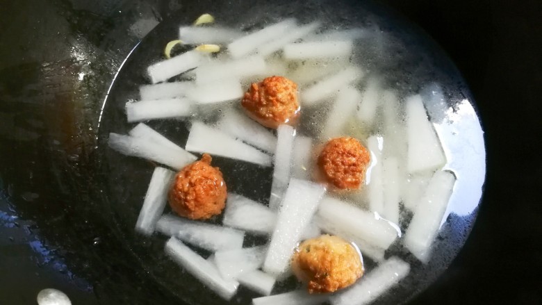 - 放入适量热水烧开转小火烧至白萝卜熟透。
