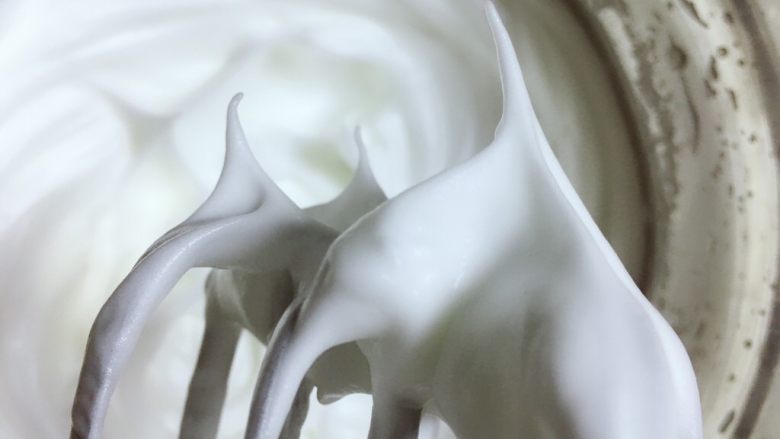 5. 打发到蛋白霜能拉起尖尖并且蛋白细腻时即可